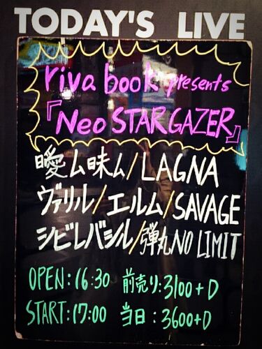 rivabook presents『Neo STARGAZER』 4/15 大阪RUIDO 弾丸NO LIMITシビレバシルSAVAGE エルム n.f.e RABBIT HOLE 毒姫心中 Fとラプンツェル Rental Family Chainsaw 当店自慢の切れ味をご堪能下さい上3でしたらびっと始まり嬉しすぎる〜〜〜!♡ 欲を言えばVe…