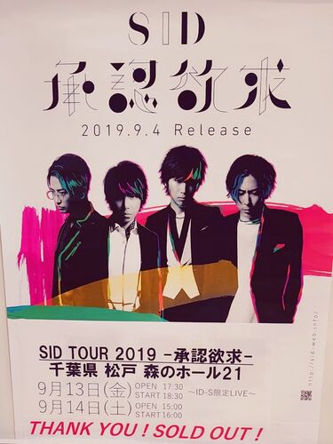 SID TOUR 2019 -承認欲求- 9/13 松戸·森のホール21 承認欲求 see through アリバイ V.I.P 2月 手 淡い足跡 罠 妄想日記 Trick ポジティブの魔法 ホソイコエ Blood Vessel MUSIC Dear Tokyo その未来へ 涙雨 EN デアイ=キセキ サマラバ 夏恋 君色の朝✯・いつ…