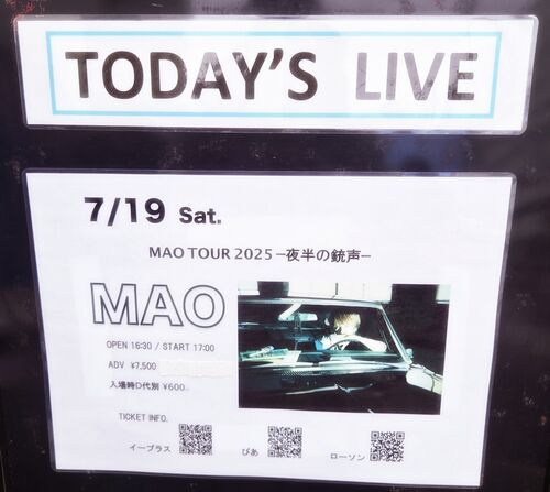 MAO TOUR 2025 -夜半の銃声-7/19 HEAVEN'S ROCKさいたま新都心VJ-3体温夜半の銃声GUILTY縄と蝶Closetrule深海枯渇HABITストロボROUTE209mannequin-EN-chandelier不埒な体温最低君とのこと ✯ ・最初マ「イェーイ!」マ「イェーイ!」マ「こんばんは、マオです…